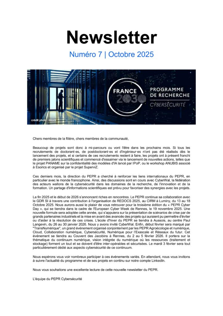 Retrouvez toutes les éditions de la newsletter du PEPR Cybersécurité